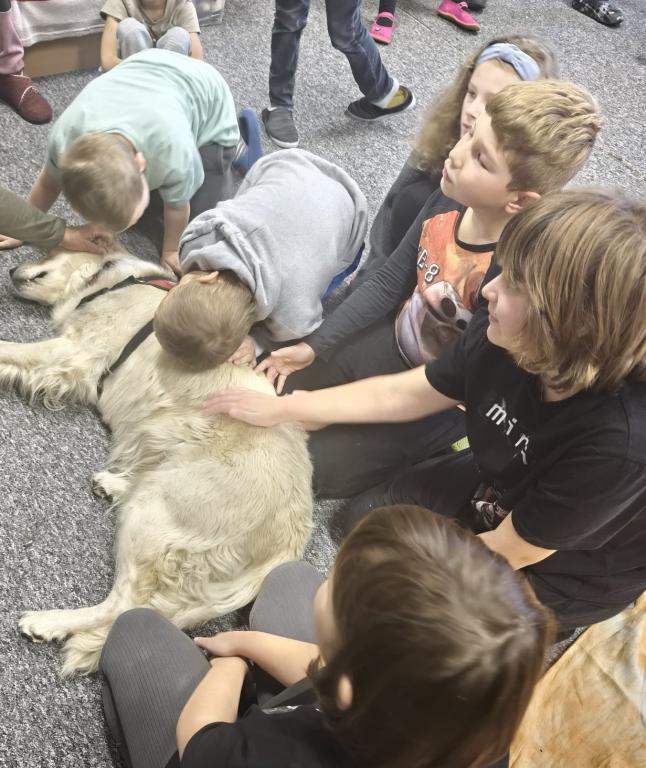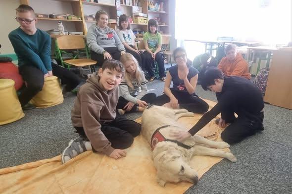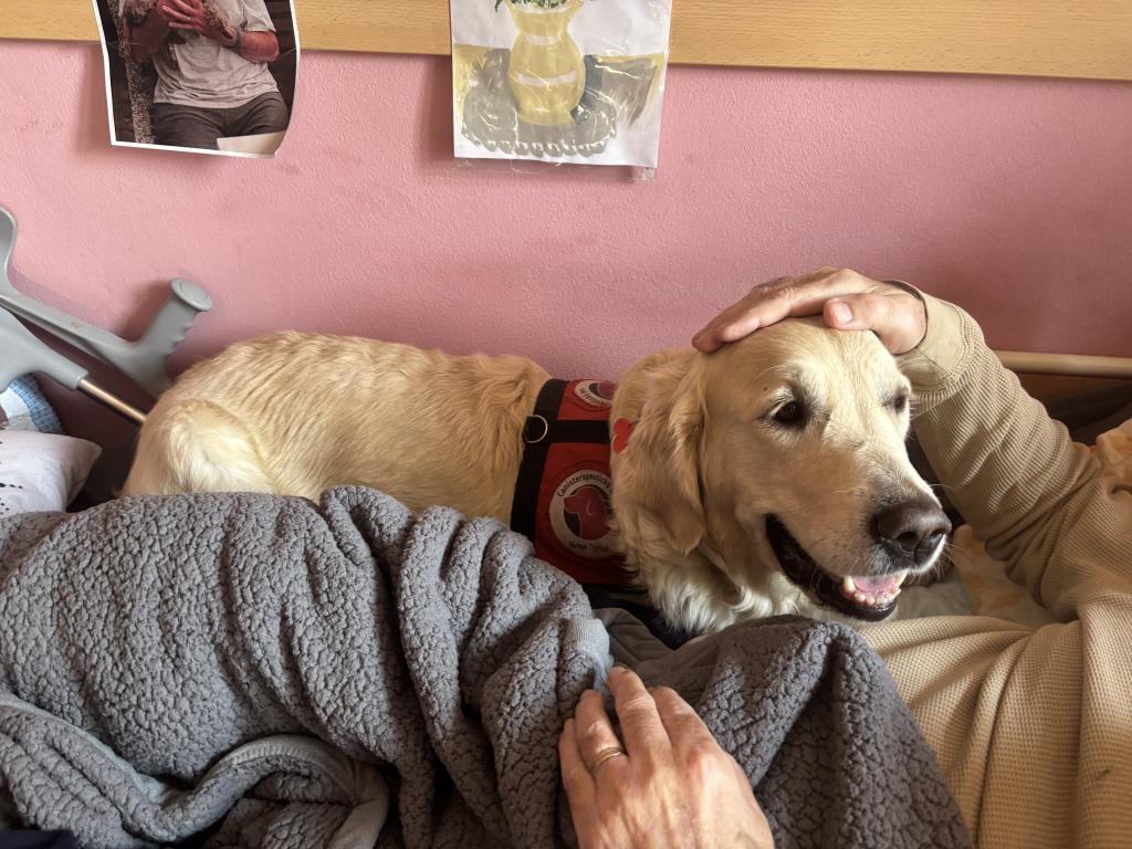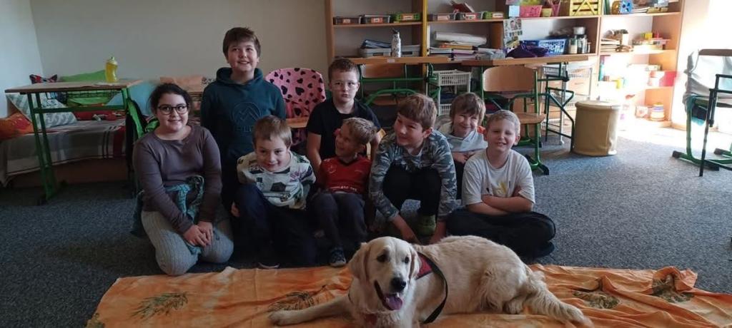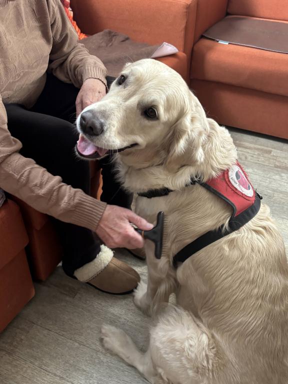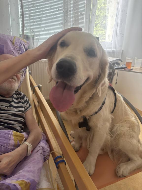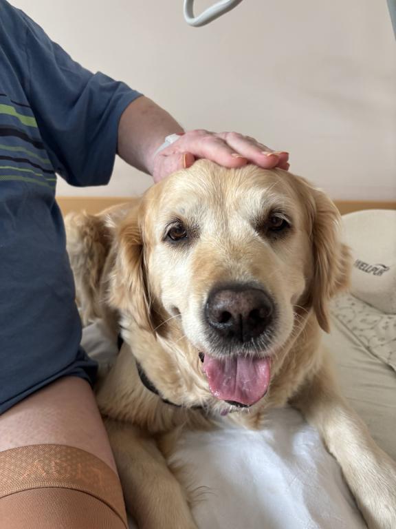 Goldi nejmilejší poloha při canisterapii - únor 2019