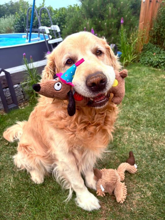 Gleník s Tobim na návštěvě na chalupě u našich holek