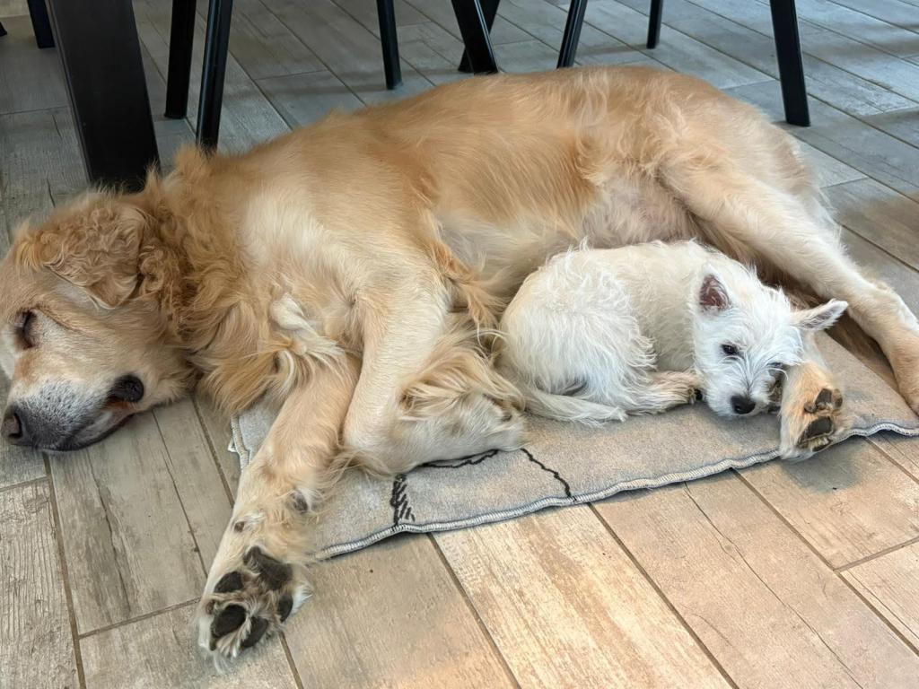 Gleník na pobytu u nás - se sestrou Goldie