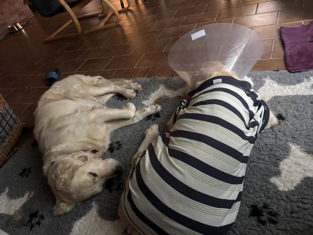 na cvičáku - tady už cvičíme (klidy) - Goldie uprostřed, Glen vlevo