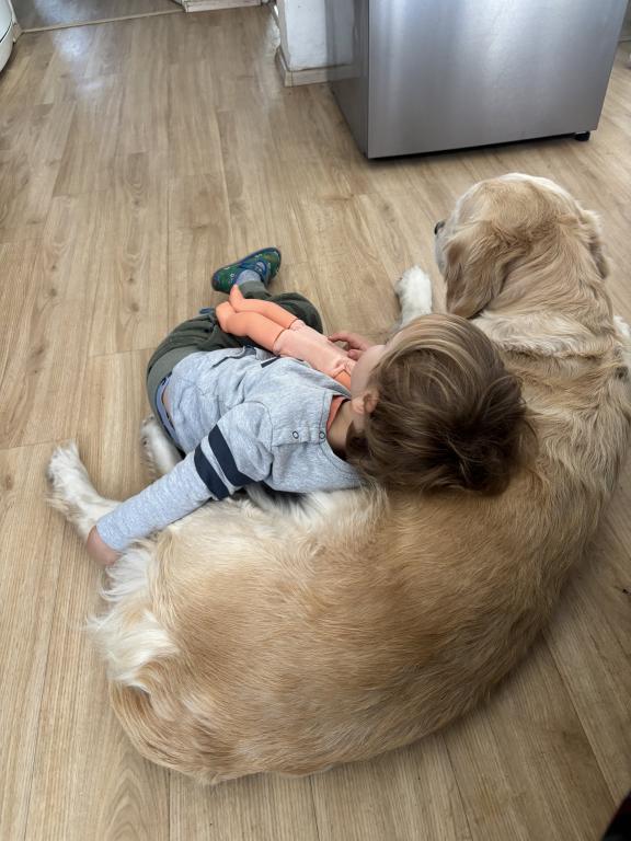 Goldienka s potomky Izzy a Chaseym u piet.místa její maminky a babičky