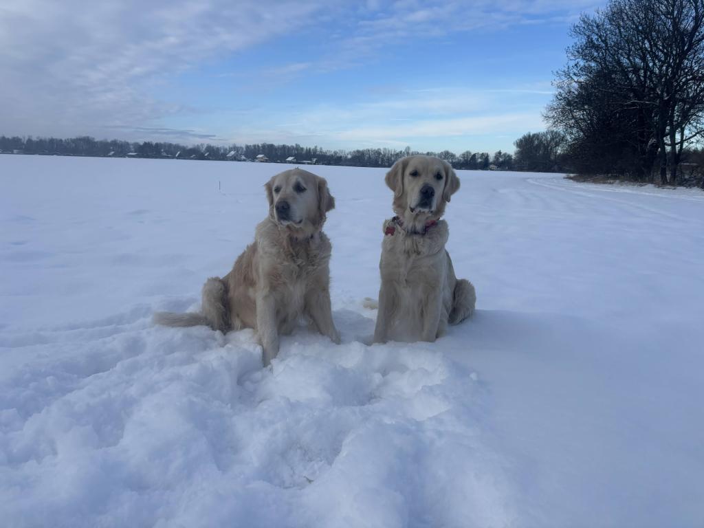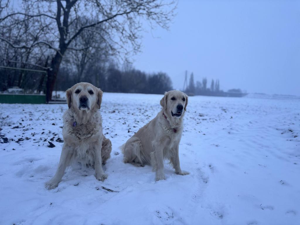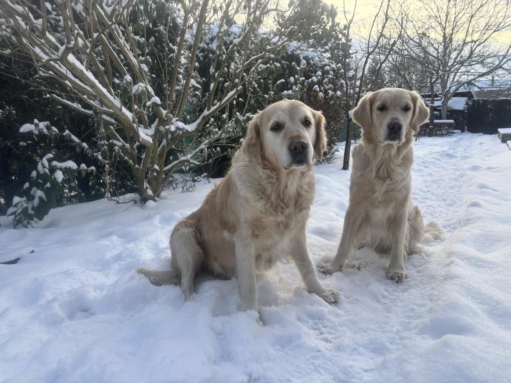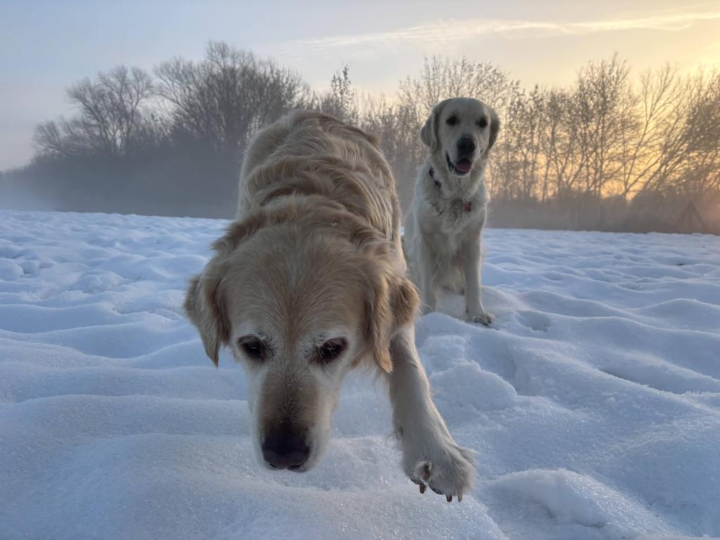 Goldienka už sice vzduchem nelítá jak její dcera a vnučka, ale sněhu si pořád užívá