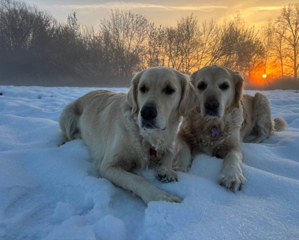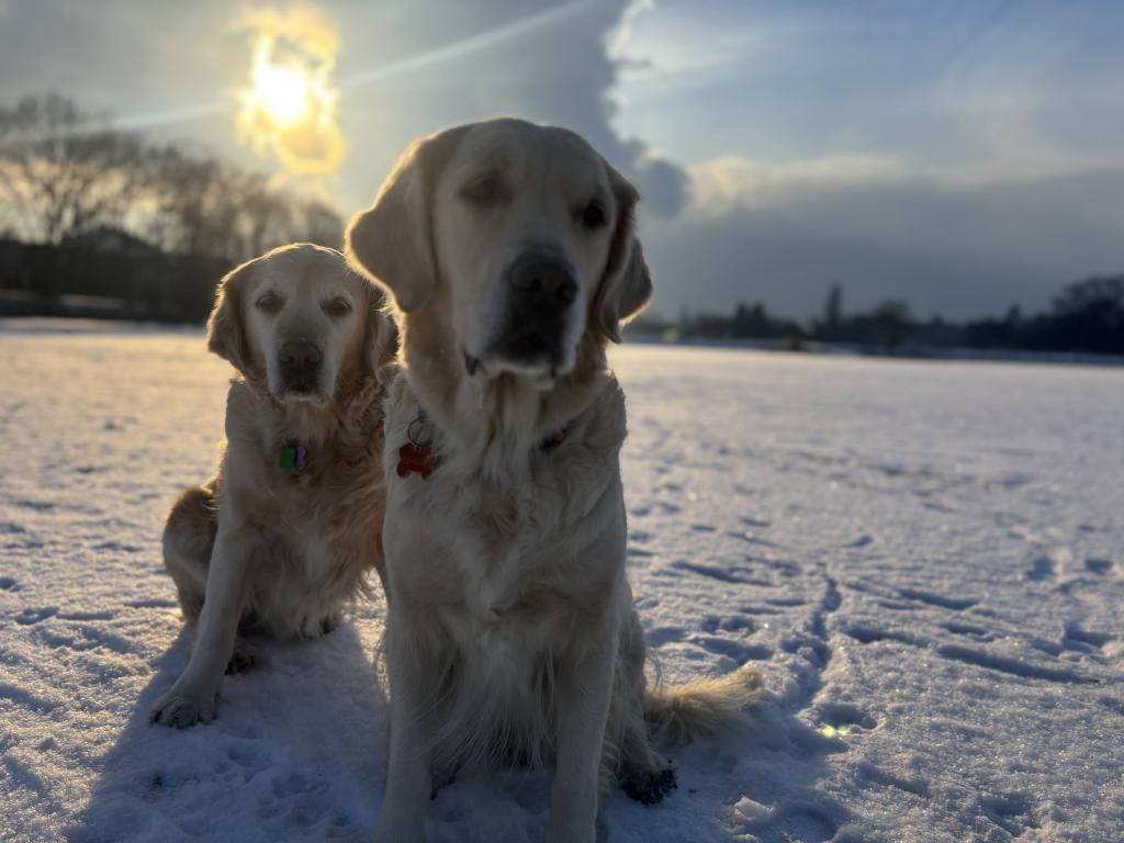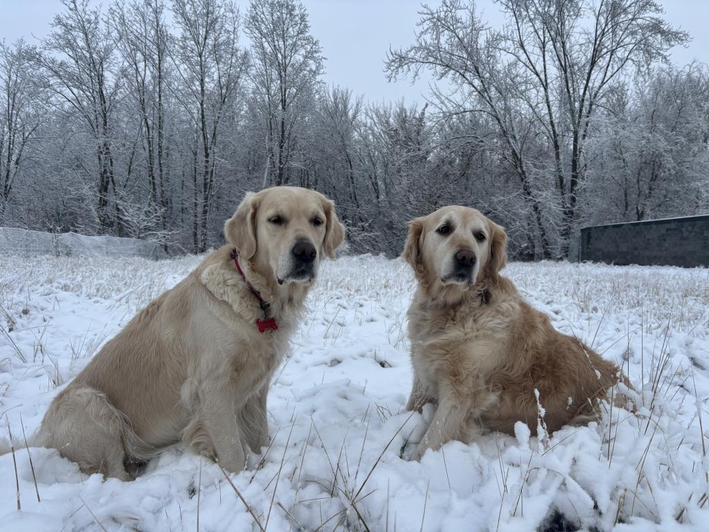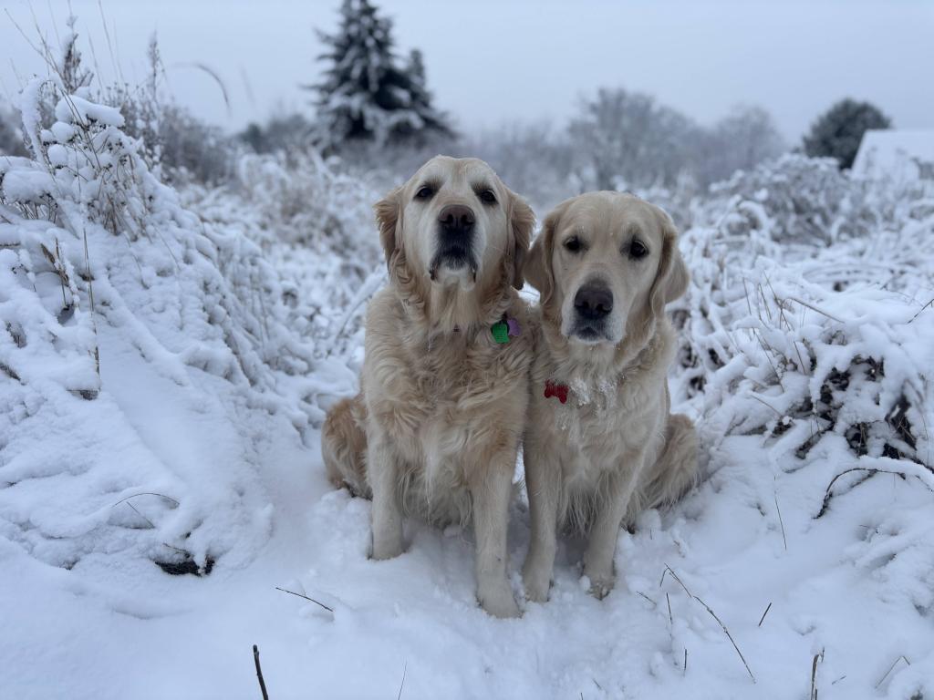 Goldienka už sice vzduchem nelítá jak její dcera a vnučka, ale sněhu si pořád užívá