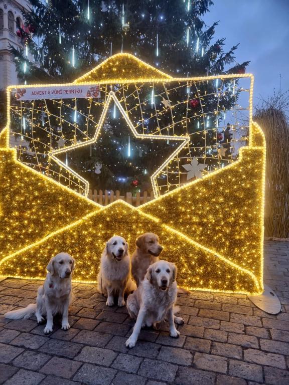 Goldienka (třetí zprava) se psí partou na Silvestra