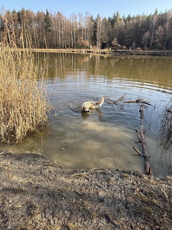 Goldienka se svojí psí i lidskou smečkou poprvé v lese