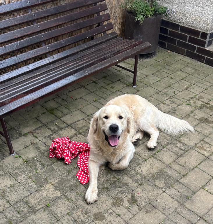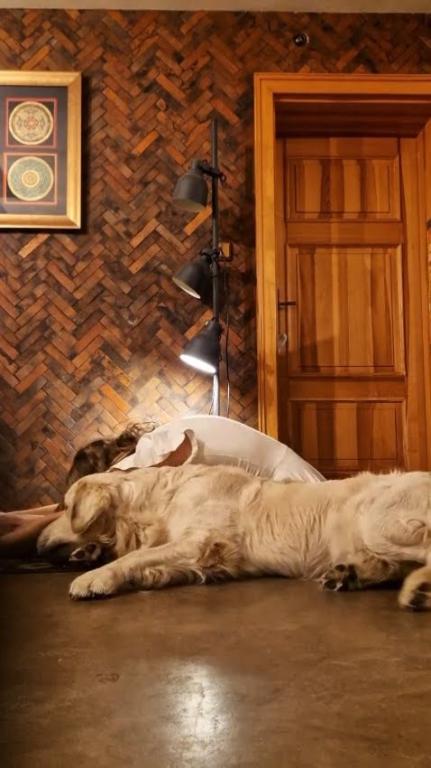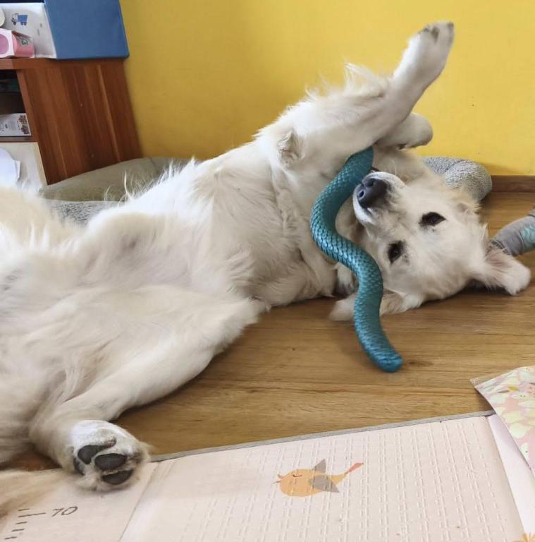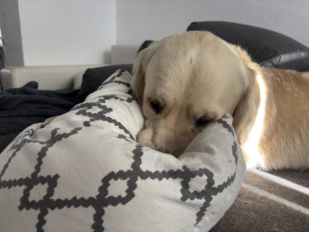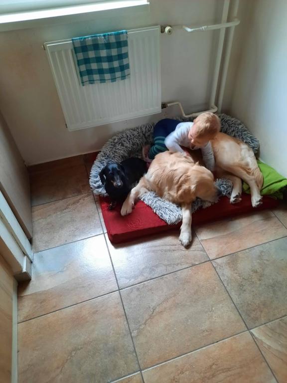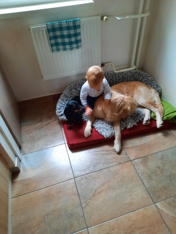 Lexienka zkouší pelíšek své psí o dost menší tety