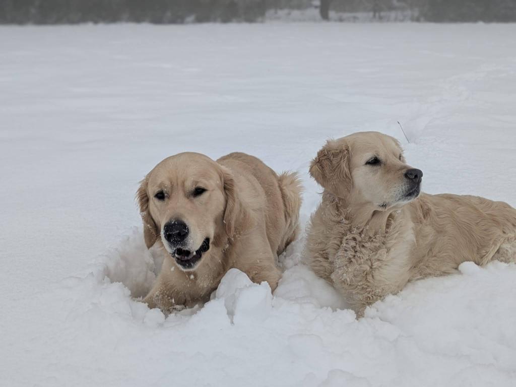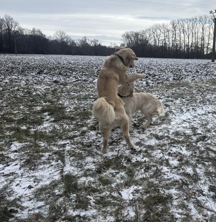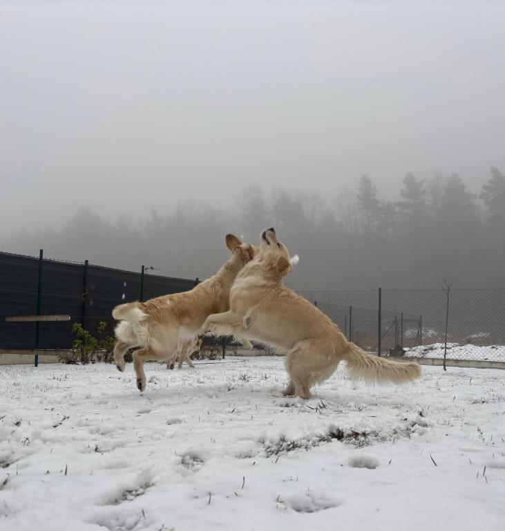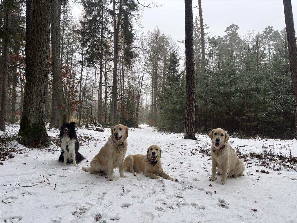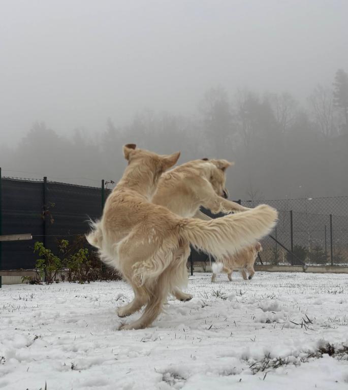 sněhová procházka s Lexienkou, jejím kamarádem a Izzynkou s Goldienkou