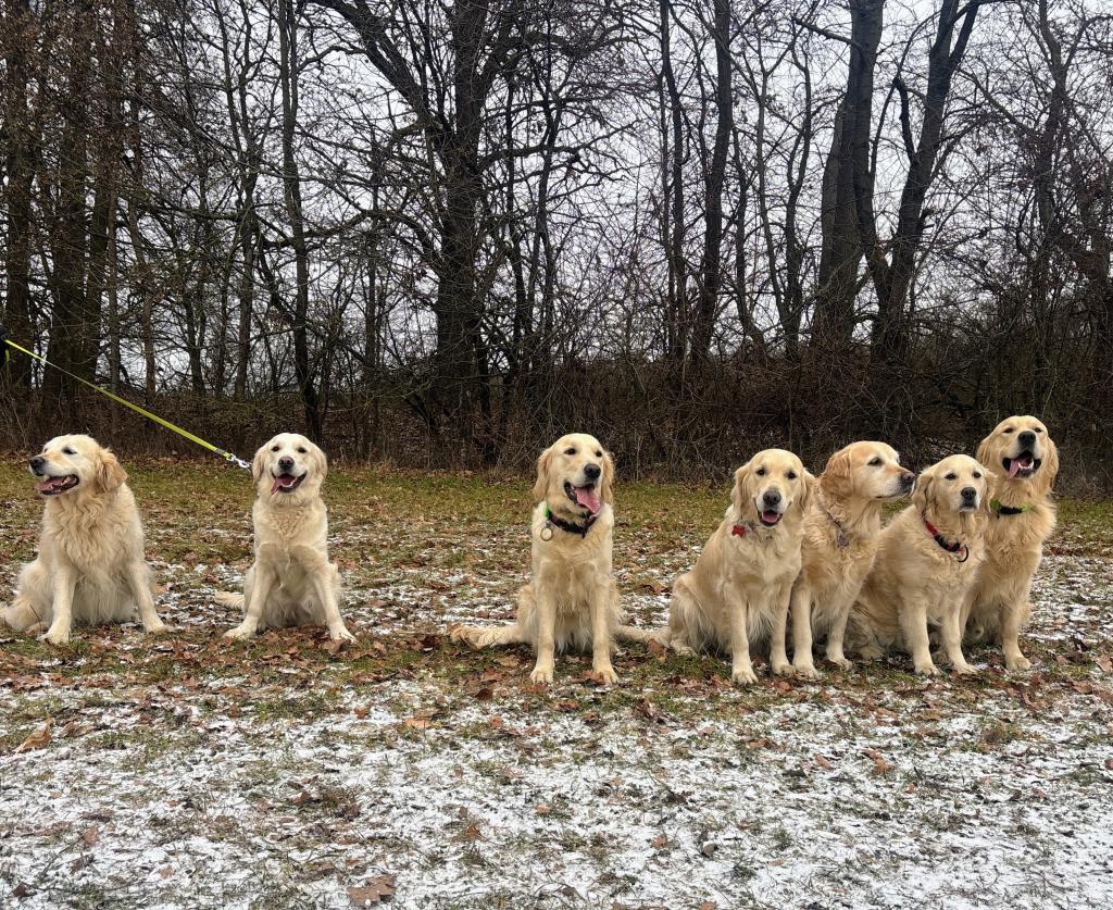 procházka s Larrym, Leem, Áďou, Izzy a Goldie
