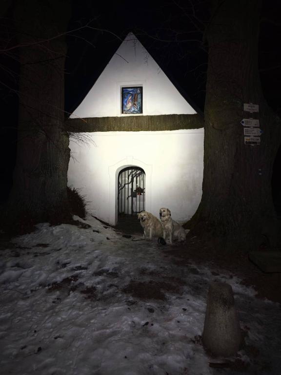 sněhová nadílka ve Dvoře K. - Larry a Áďa